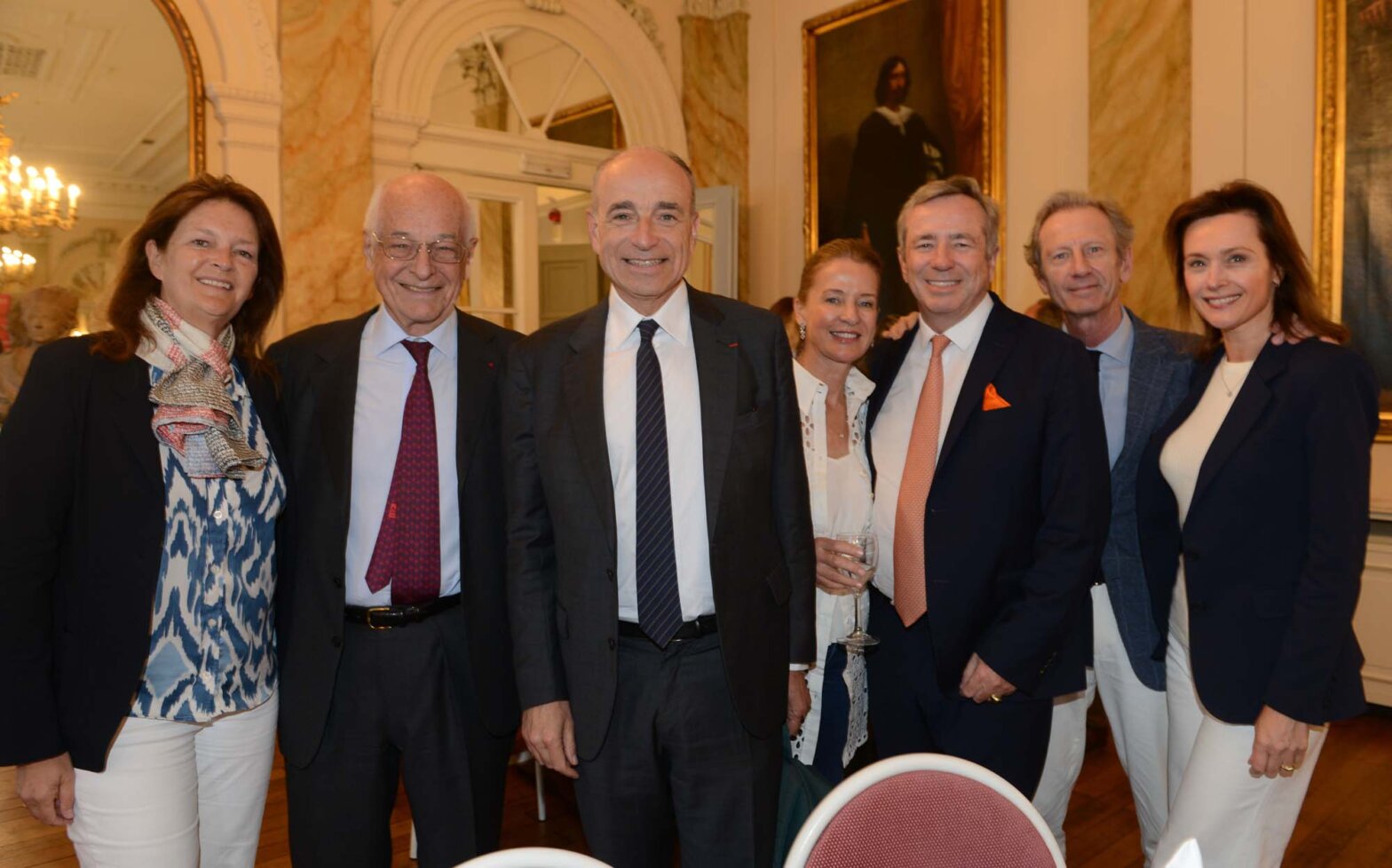 Lunch met Jean-François Copé Cécilia de Rosnay, Amaury de Sèze, Jean-François Copé, François Barrault en graaf François Didisheim